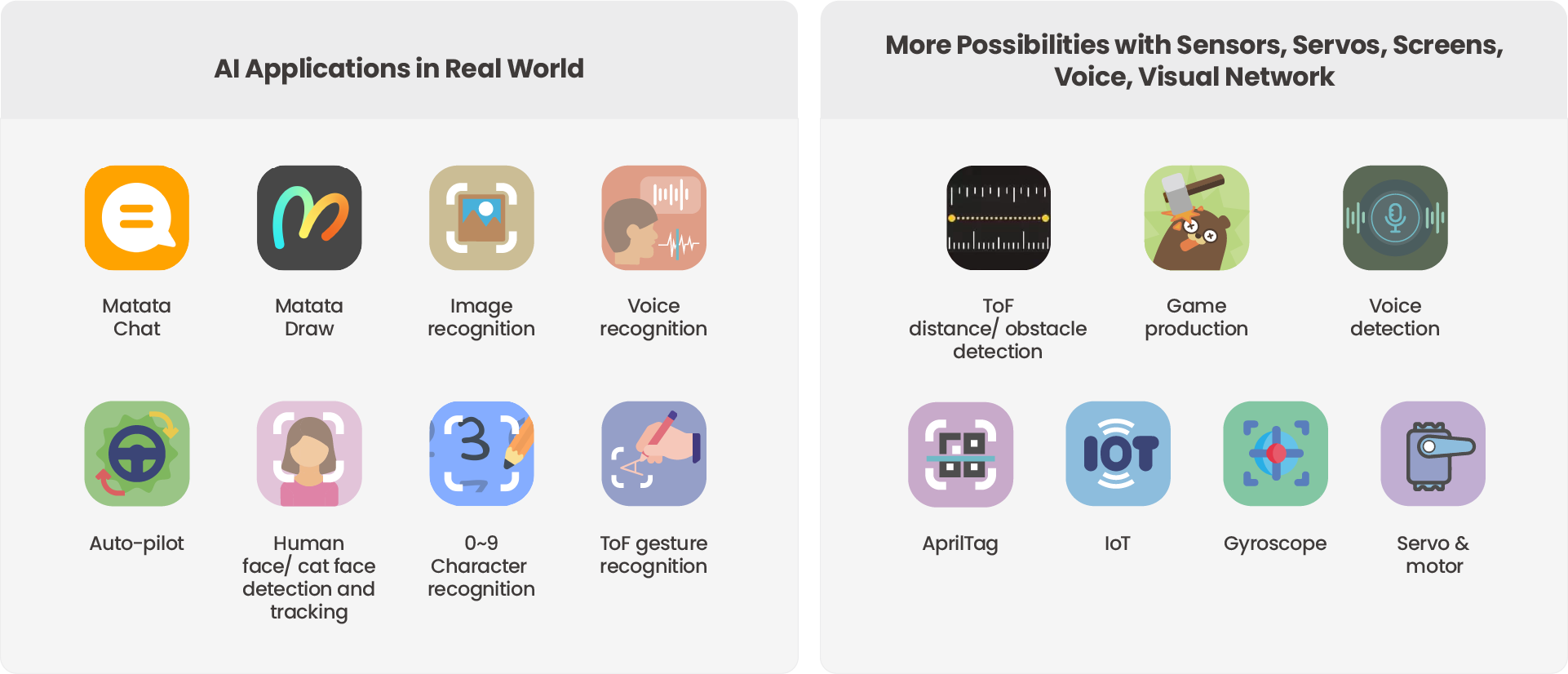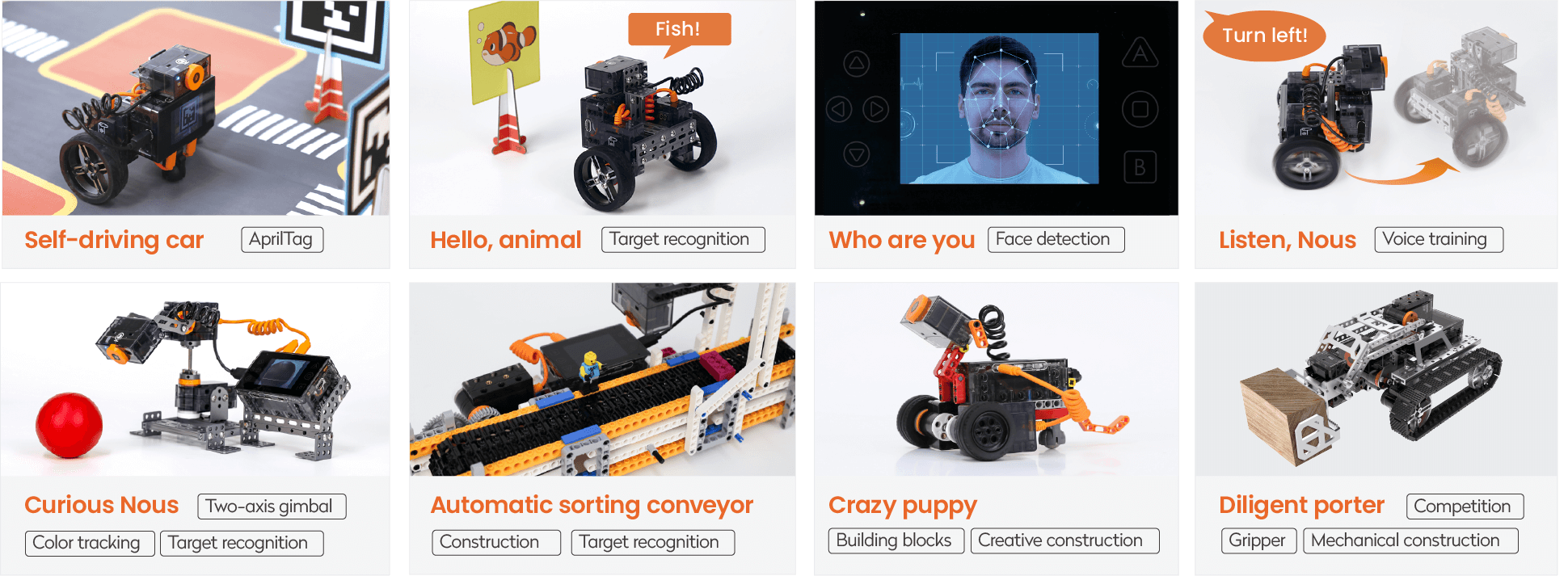 It is suitable for scenarios such as artificial intelligence education, programming education (graphical programming and Python programming), robot teaching, creative assembly, electronic project creation, and robotics competition.